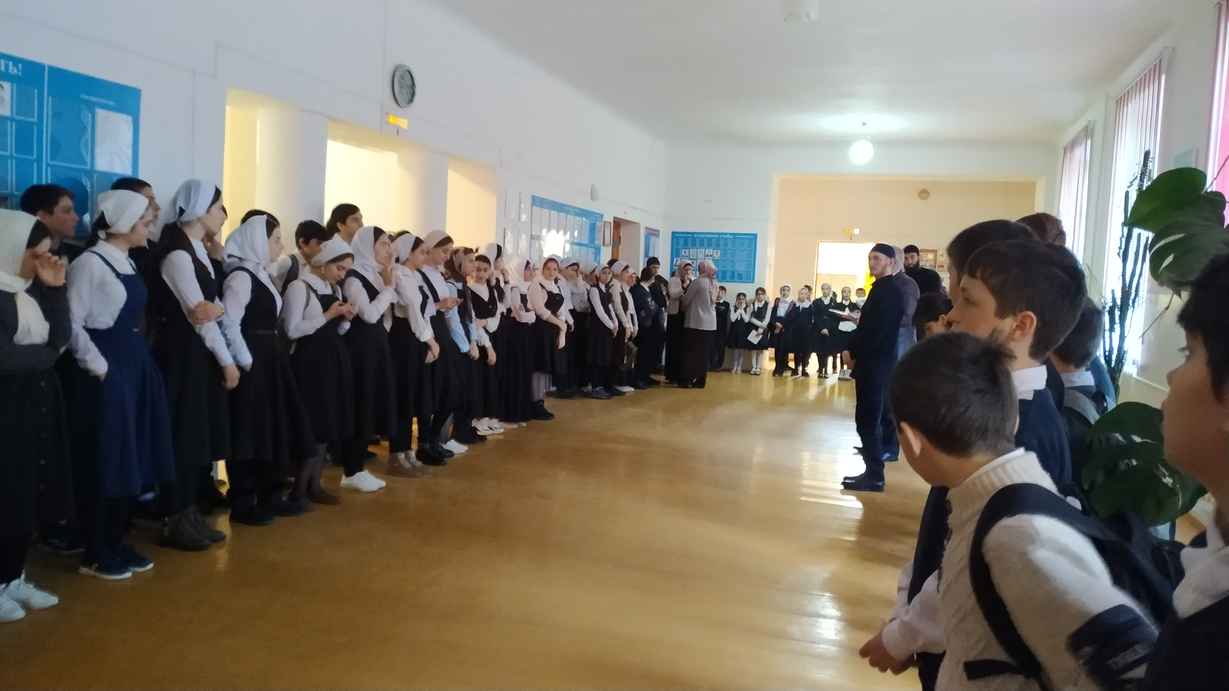 05.02.2020Проведена общешкольная линейка с учащимися 1 и 2 смены на которой, в целях повышения уровня правосознания организовано выступление имама мечети с. Ведено Ю.М. Аюбова по теме: «Терроризм – угроза обществу. В своем выступлении имам акцентировал внимание учащихся на то, чтобы не попадаться в расставленные сети зла в СМИ, для отличия хорошего от плохого в первую необходимостью очередь является учеба. Знание это сила. Только грамотный человек находит правильные ориентиры в жизни.