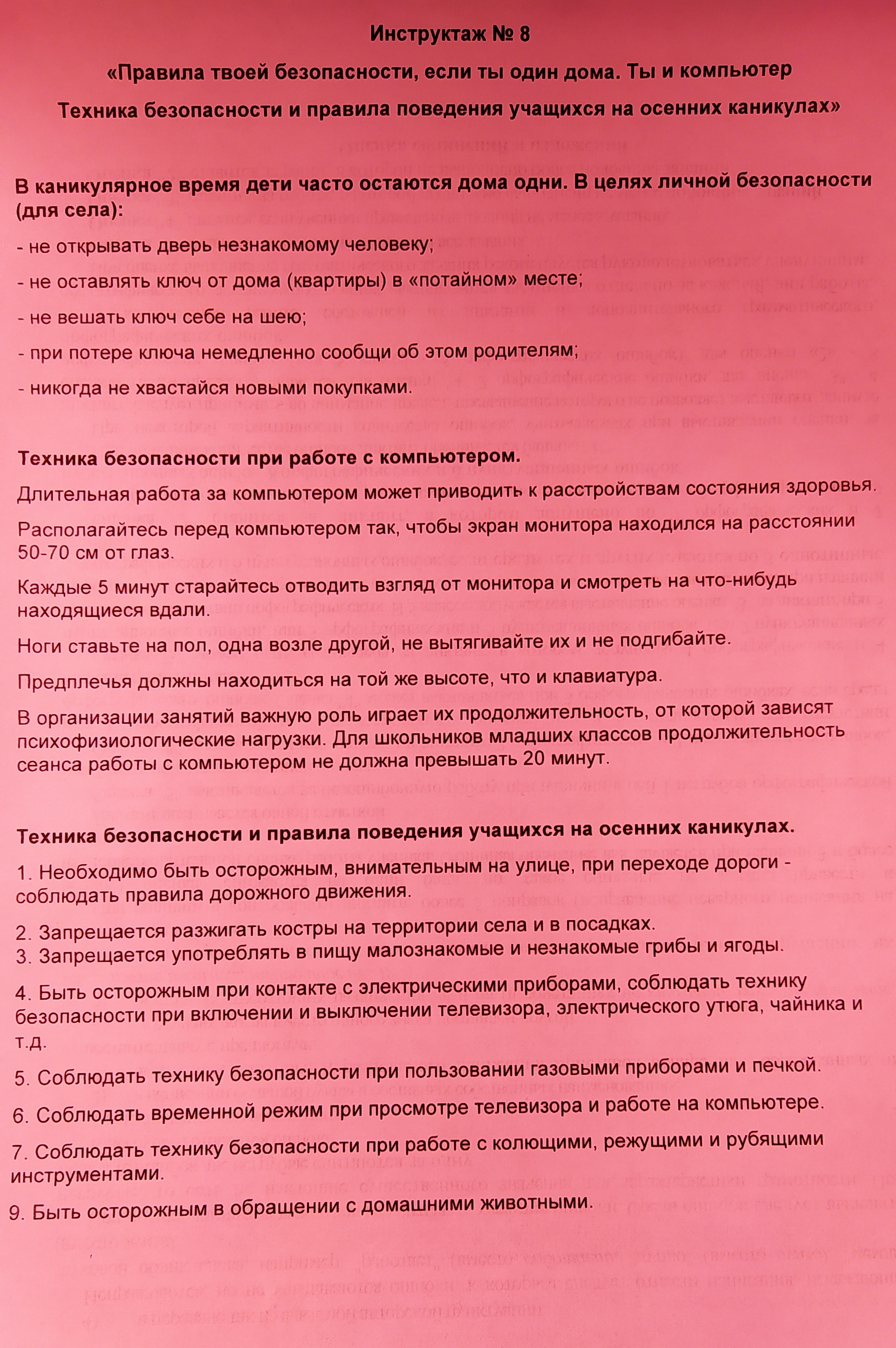 Техника безопасности и правила поведения но осенних каникулах