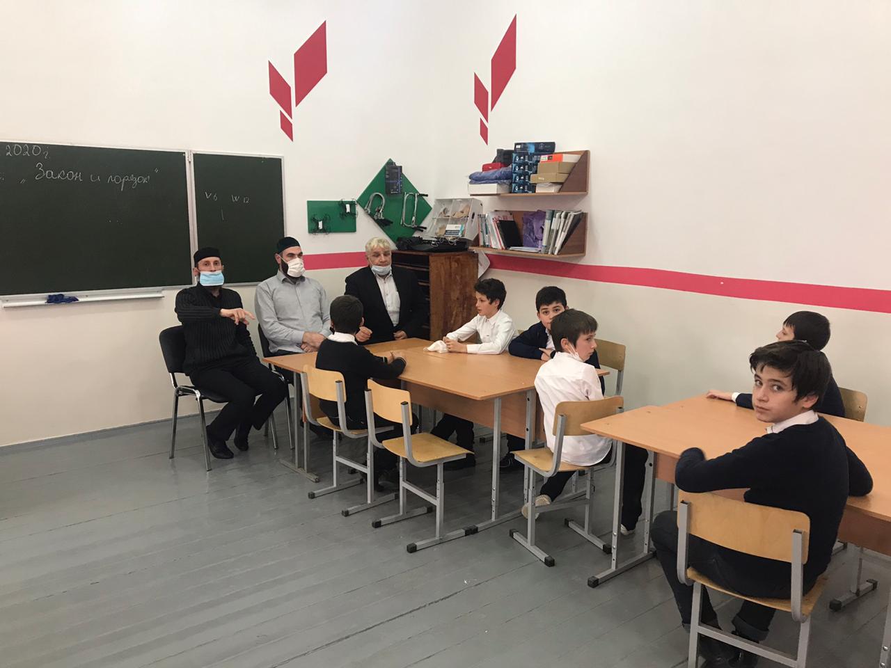 С 16.11. по 22.11. 2020 года организованы встречи имама мечети с. Ведено Муртазаева Аюба Мусибековича, представителей муфтията Веденского района, которые провели беседы с учащимися в 5 - 11 классах. Беседы были направлены на формирование у учащихся патриотической и духовно – нравственной основы, позитивного отношения к принимаемым мерам по противодействию преступности.