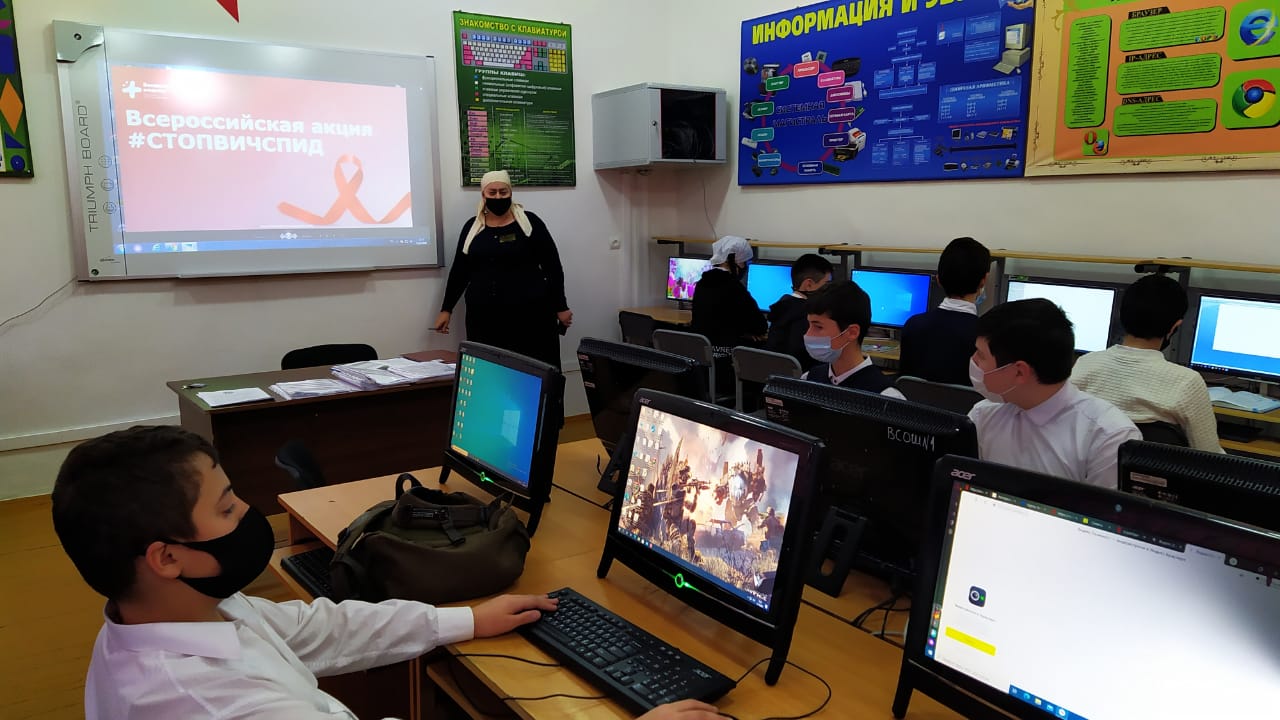 15.12.2020В рамках проведения Всероссийской акции «Стоп ВИЧ/СПИД» в школе в период с 07.12. по 14.12 2020 года проводились мероприятия, которые повысили уровень информированности обучающихся о ВИЧ/СПИДЕ.В рамках акции в школе прошли следующие мероприятия:- Проведены классные часы на тему «Стоп ВИЧ/СПИД», которыми были охвачены учащиеся 5-11 классов. Ребятам был продемонстрирован социальный ролик, приуроченный к Всемирному дню борьбы со СПИДом. В ходе проведения классных часов, были рассмотрены с учащимися вопросы формирования ответственности по отношению к собственному здоровью.В начальной школе демонстрировались анимационные видеоролики« Здоровый образ жизни», «личная гигиена школьника»;
