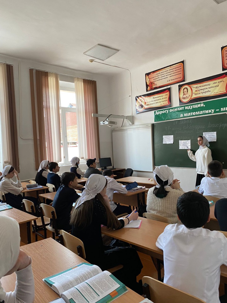 Ключевым символом Всероссийской акции памяти «Блокадный хлеб» является кусочек хлеба весом в 125 граммов — именно такая минимальная норма выдачи хлеба на человека в день была установлена в самый трудный период блокады Ленинграда. Учитель истории Садулаев М.уса в ходе проведения уроков демонстрировал презентацию с информацией о пережитых трудностях в тяжелые дни блокады.