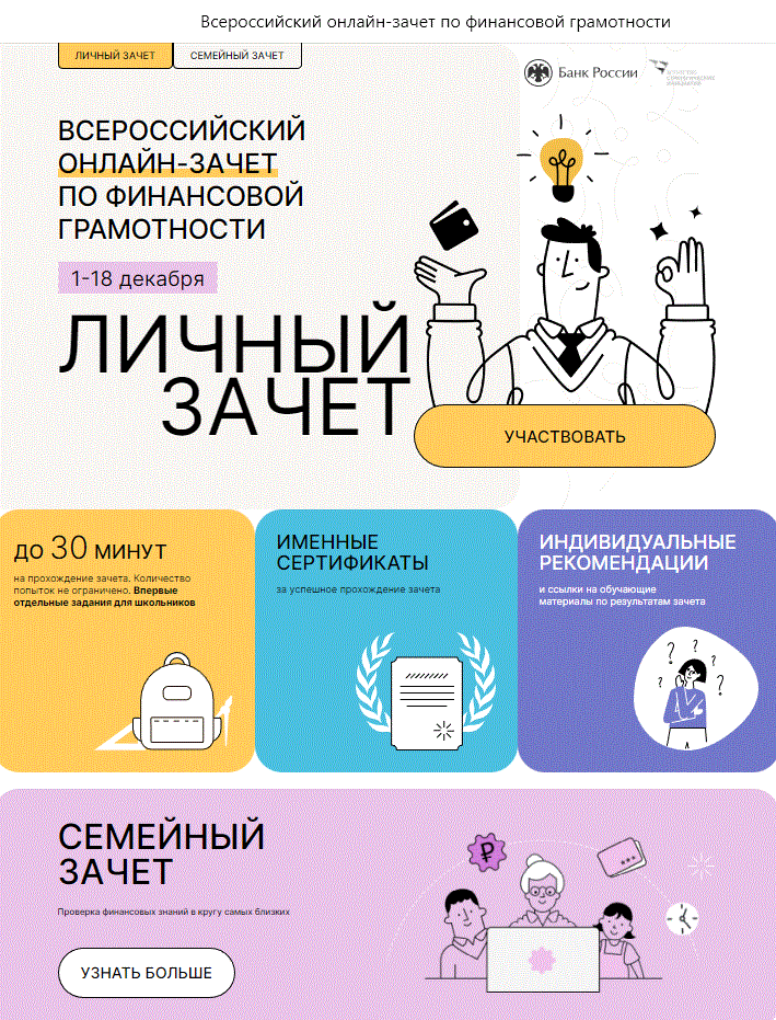 ВСЕРОССИЙСКИЙ ОНЛАЙН-ЗАЧЕТ ПО ФИНАНСОВОЙ ГРАМОТНОСТИ