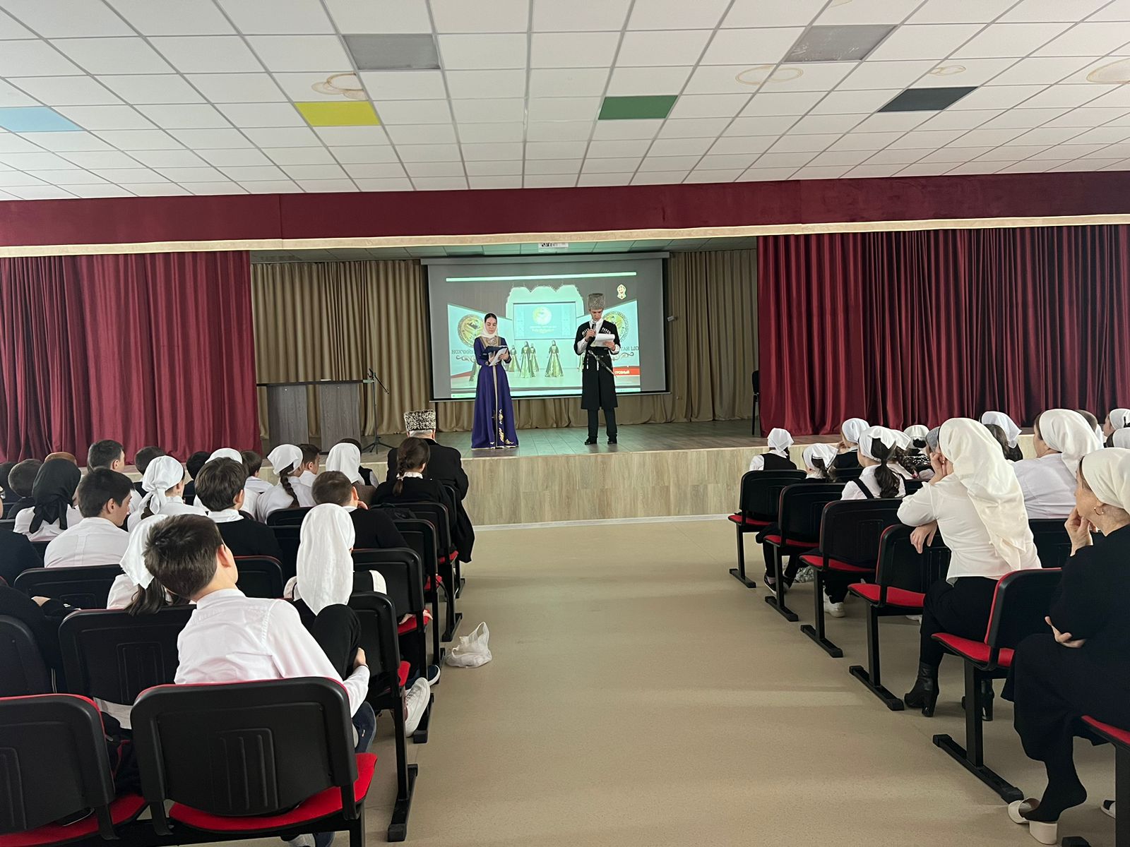 09.02.202309.02.2023 года в актовом зале МБОУ « Веденская СОШ №1» проведено общешкольное мероприятие, посвященное открытию Года чеченского языка Программа мероприятия была насыщена декламациями стихов о родном крае, музыкальными и танцевальными номерами в которых были затронуты обычаи и традиции чеченского народа, В мероприятии принимали участие работники РДК с.Ведено, учащиеся всех ступеней обучения. В качестве гостя присутствовал поэт Чеченской Республики Яралиев Юсуп Сардалалиевич, который в конце мероприятия, в своем выступлении поблагодарил организаторов и участников за содержательное и грамотно подготовленное мероприятие, пожелал учащимся успехов в учебе.