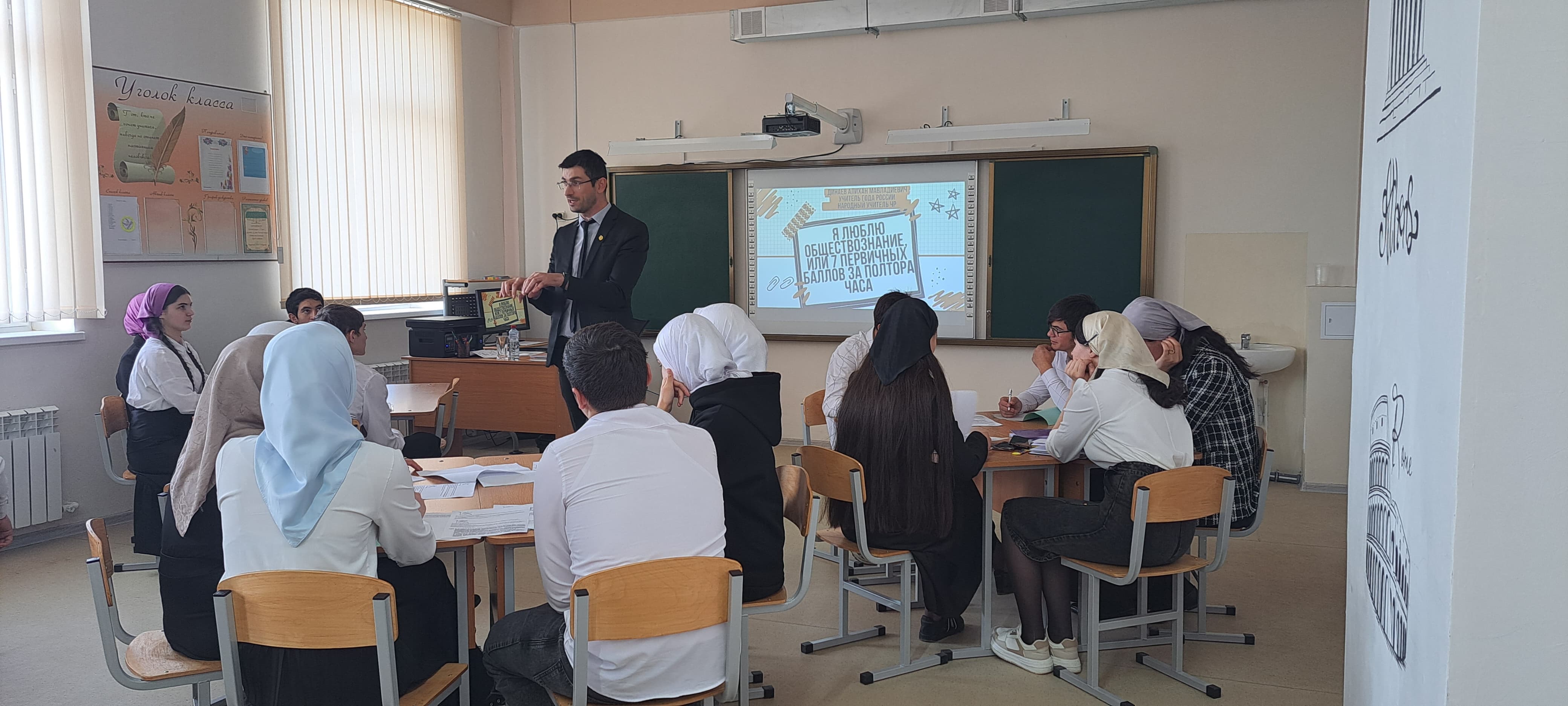 Победитель Всероссийского конкурса «Учитель года-2018» Алихан Динаев провел занятия с выпускниками Веденского района, которые выбрали ЕГЭ по обществознанию.