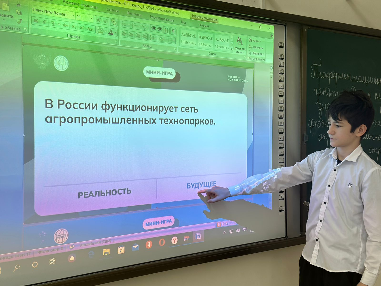 11 января в МБОУ «Веденская СОШ№1» в рамках курса внеурочной деятельности «Россия- мои горизонты» состоялось профориентационное занятие «Россия плодородная: узнаю о профессиях и достижениях агропромы