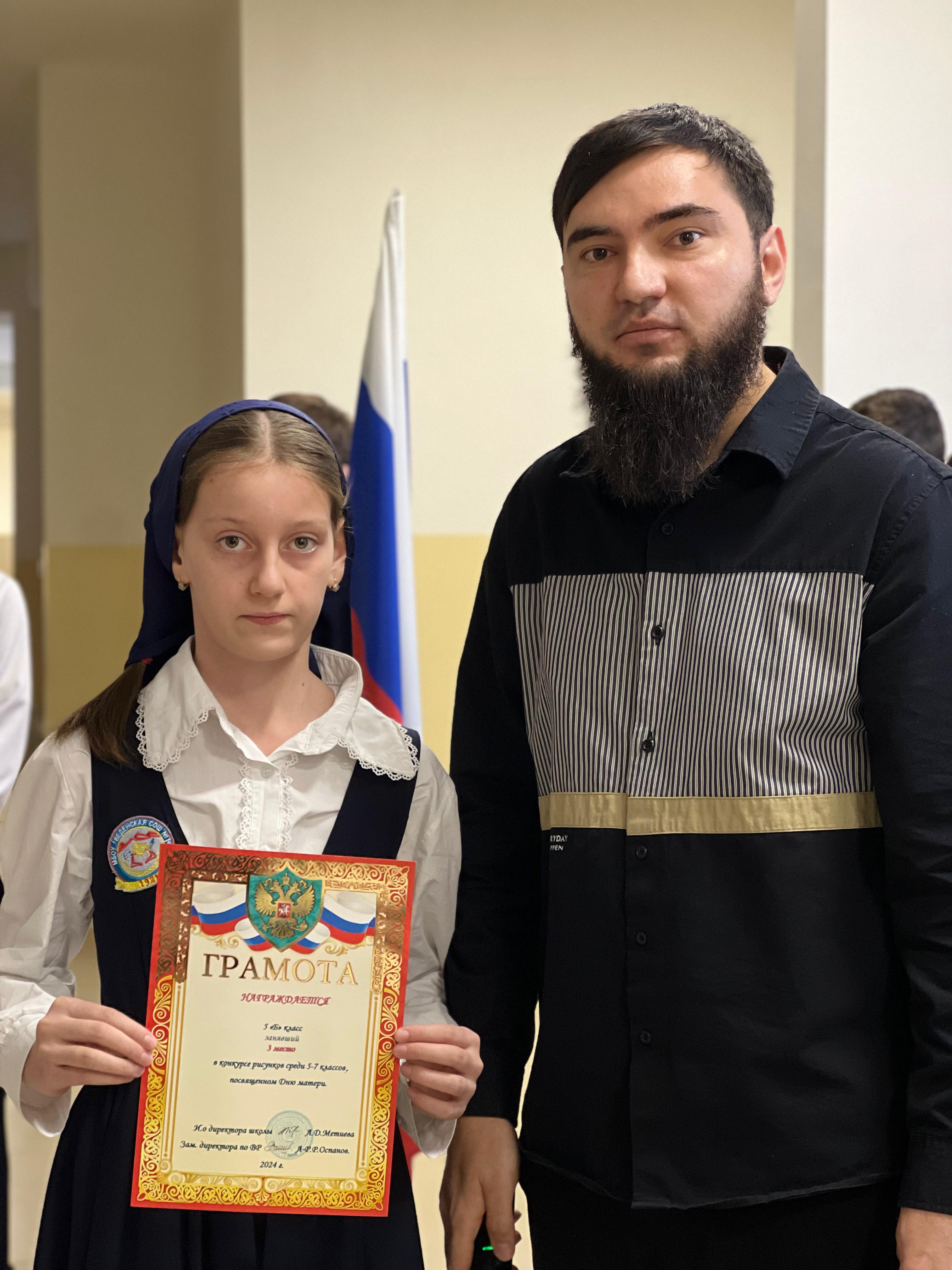 Сегодня, после торжественной линейки, заместитель директора по воспитательной работе Абдул-Рашид Рамзанович объявил итоги конкурса, посвященные ко Дню матери.