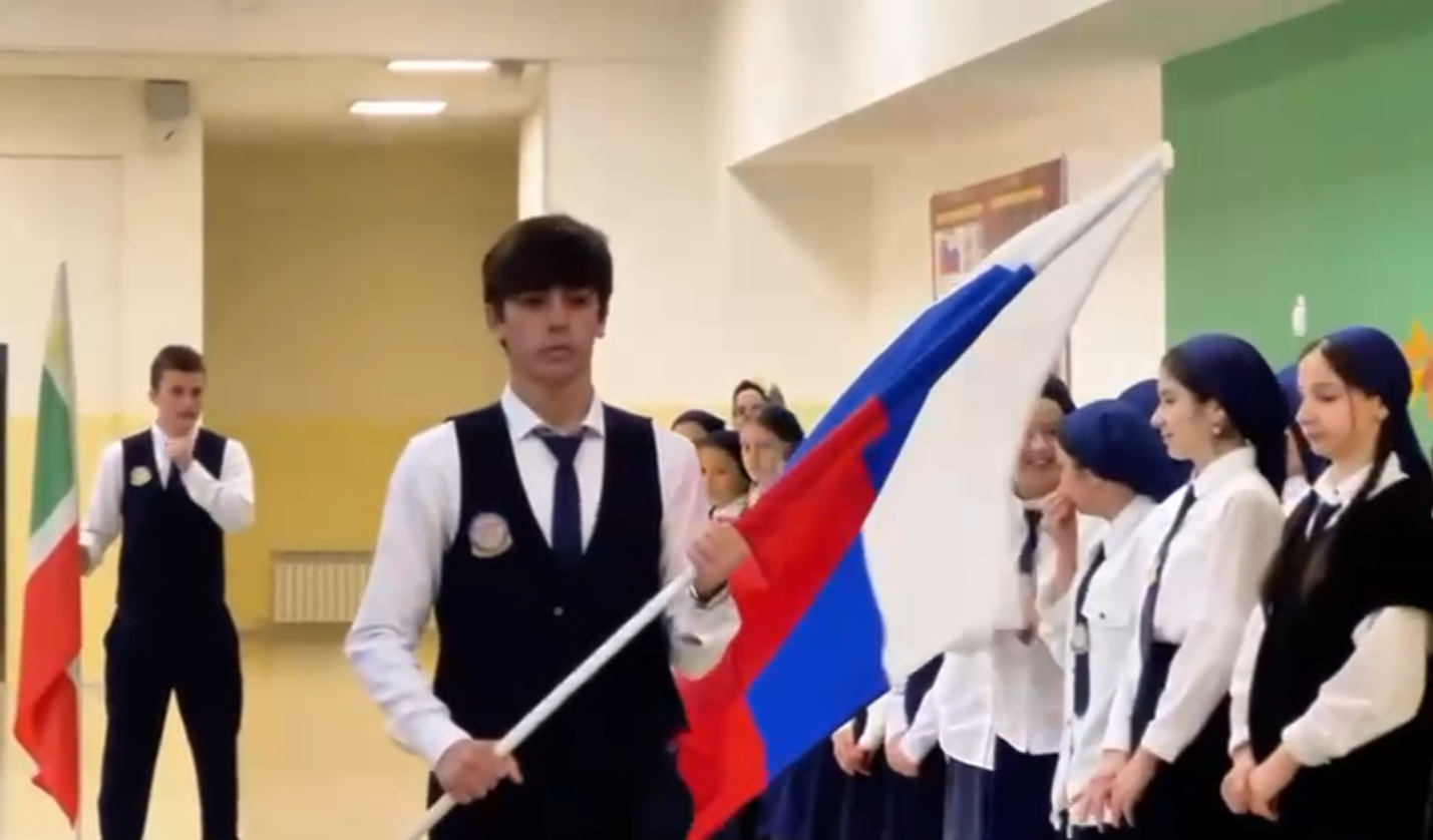 Почетное право вынести Государственный флаг Российской Федерации и ЧР предоставили обучающимся 11 класса.