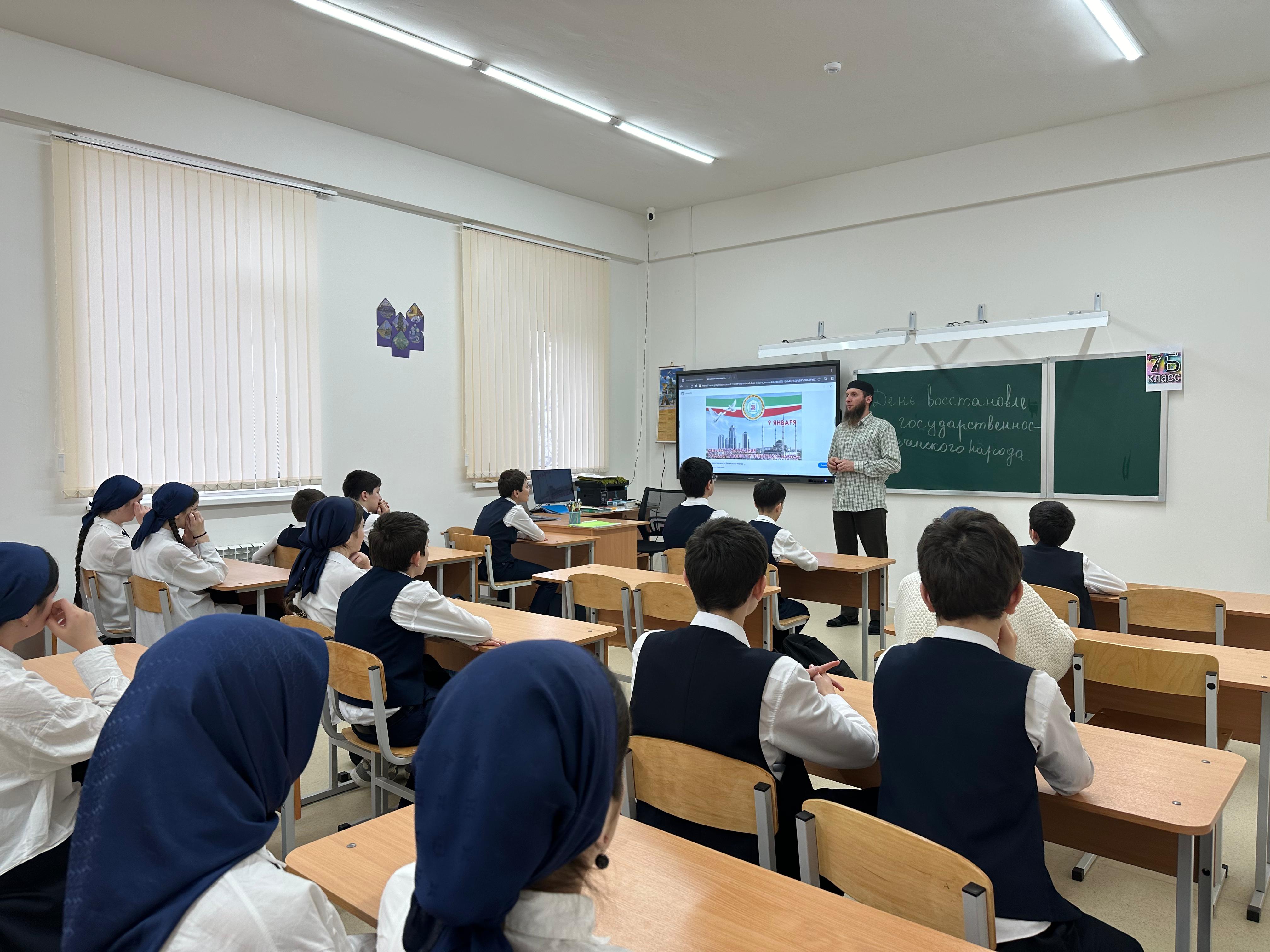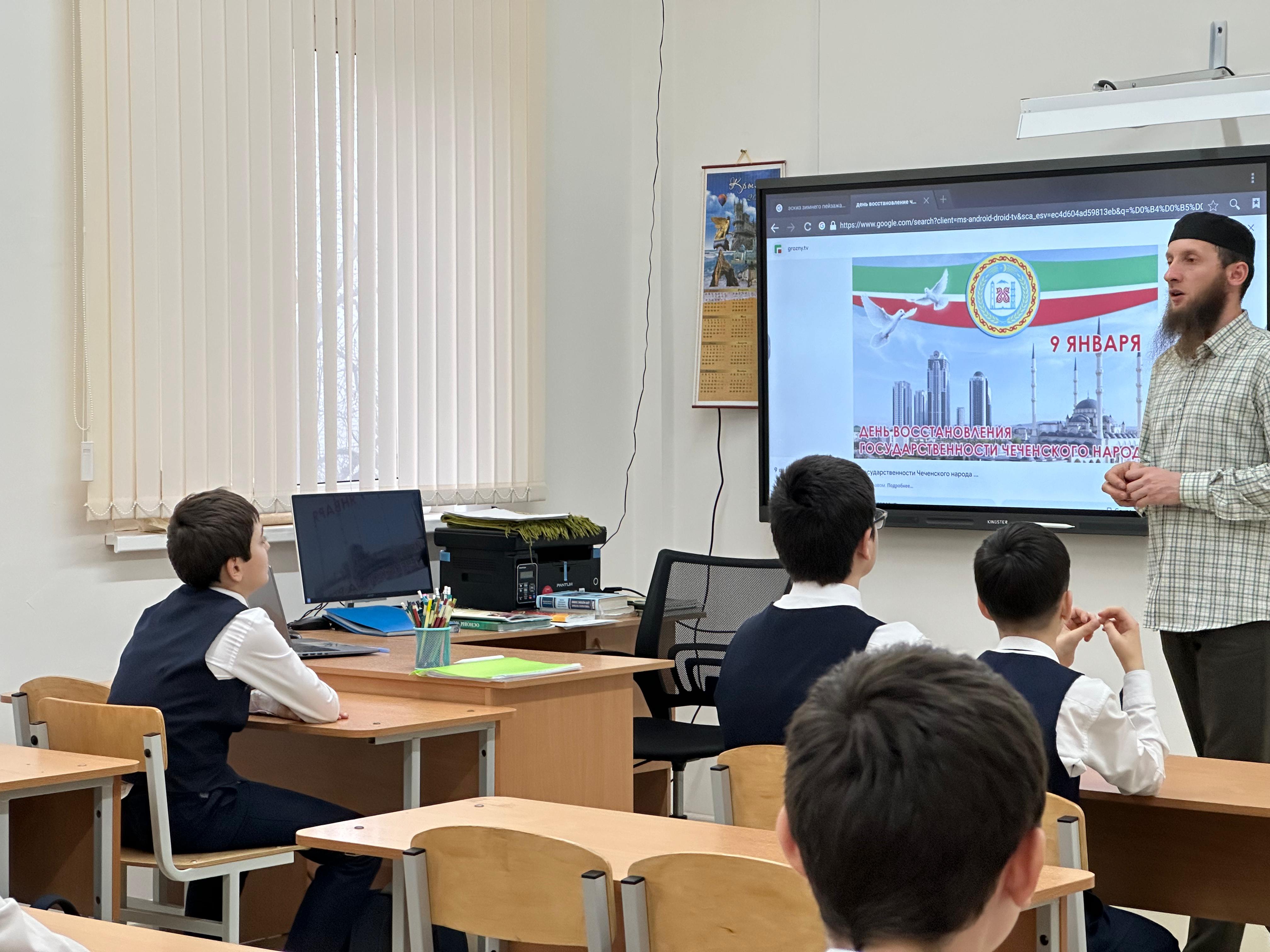 13.01.2025Классный руководитель 7 «Б» класса, Аюбов Адам Тагирович, подготовил и провел классный час на тему: «День восстановления государственности чеченского народа».