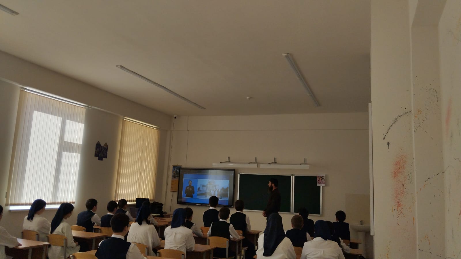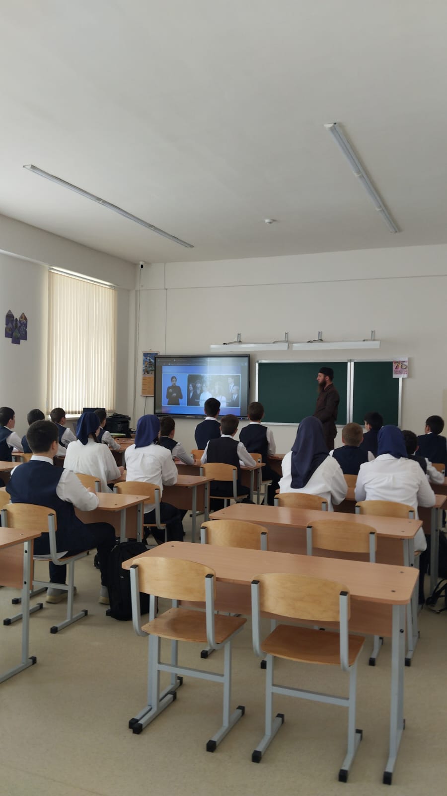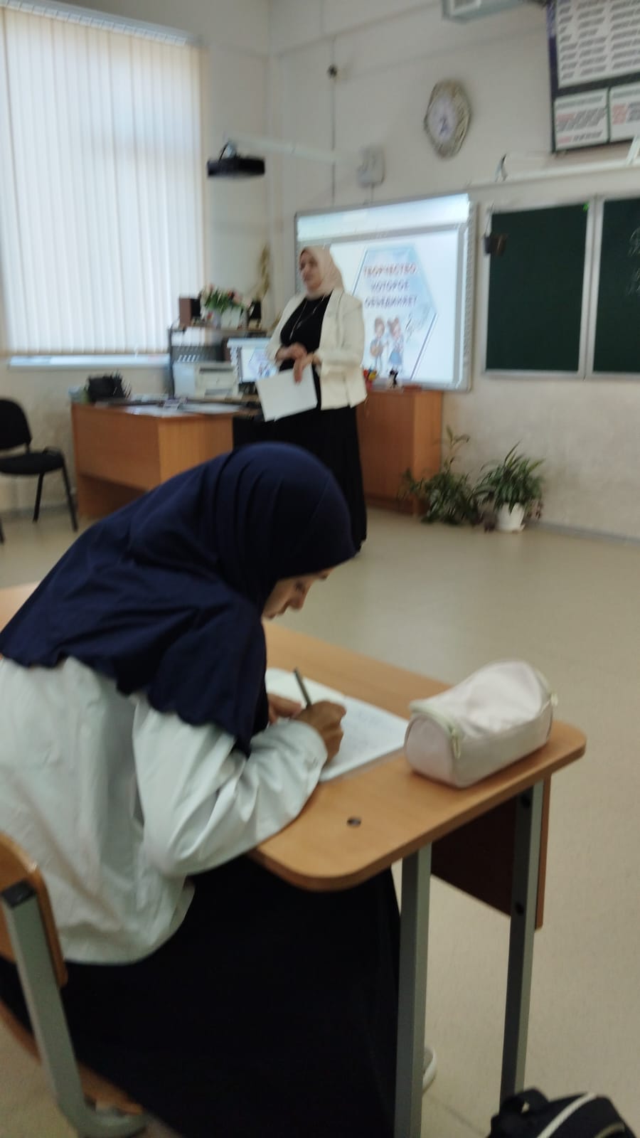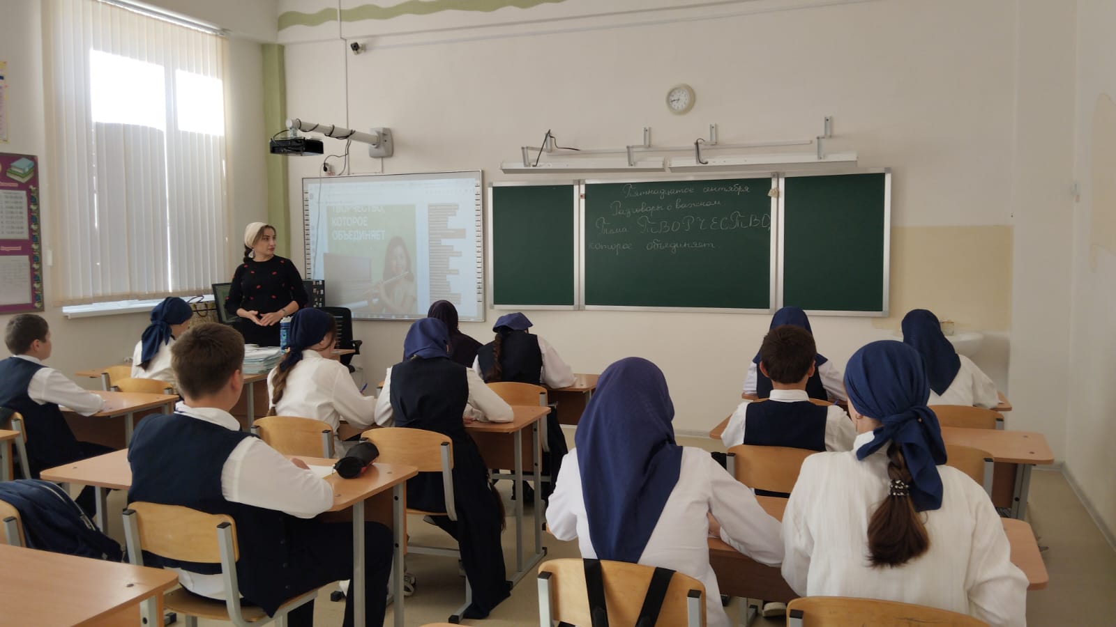 15.09.2025В соответсии с календарным планом воспитательной работы на 2025-26 учебный год, в целях гражданско-патриотического воспитания подрастающего поколения, укрепления духовных ценностей и формирования сопричастности к истории и культуре России и Чеченской Республики 15.09.2025г. была проведена еженедельная торжественная церемония поднятия флагов, а также внеурочное занятие из цикла "Разговоры о важном" на тему: творчество, которое объединяет.