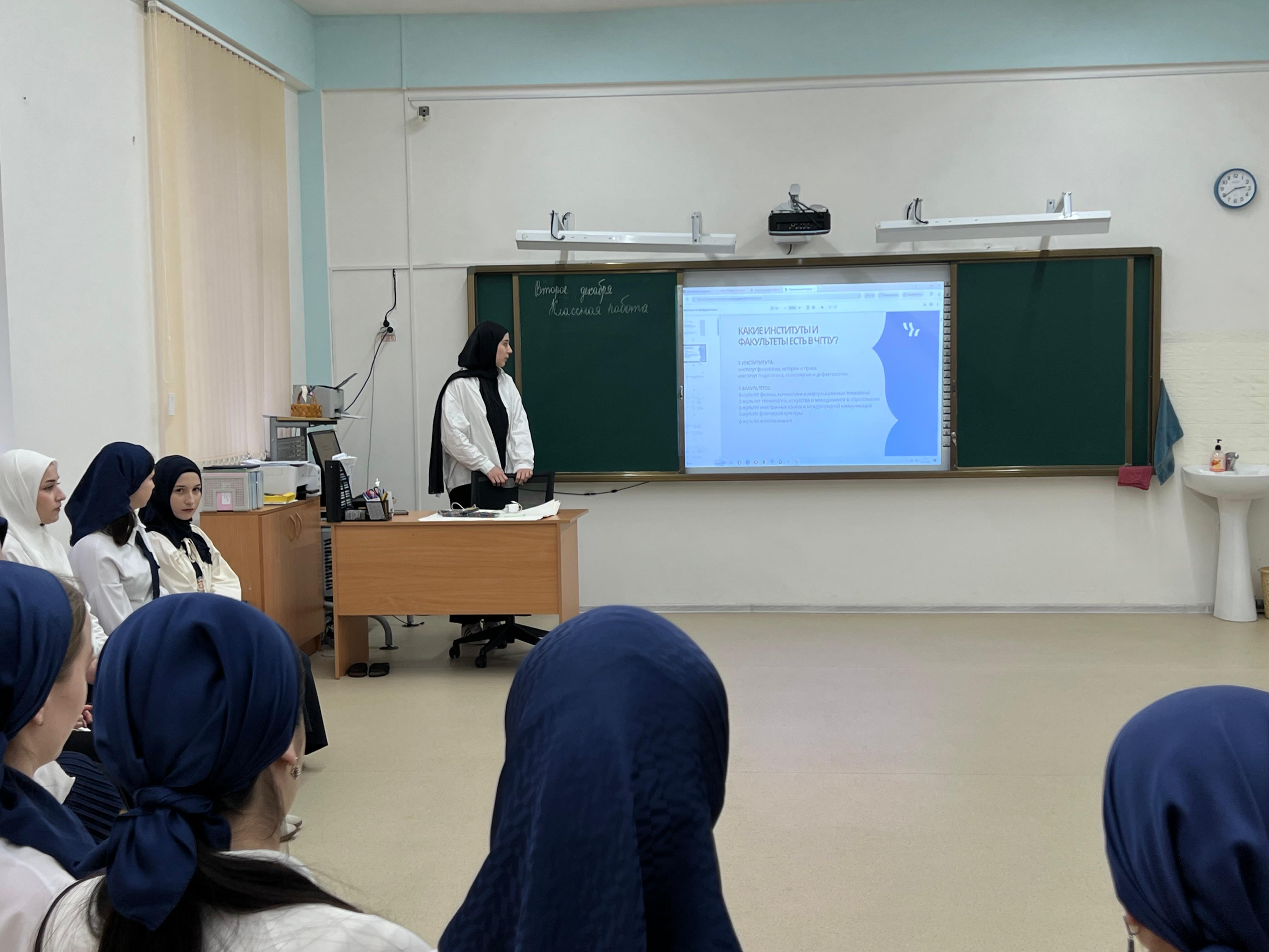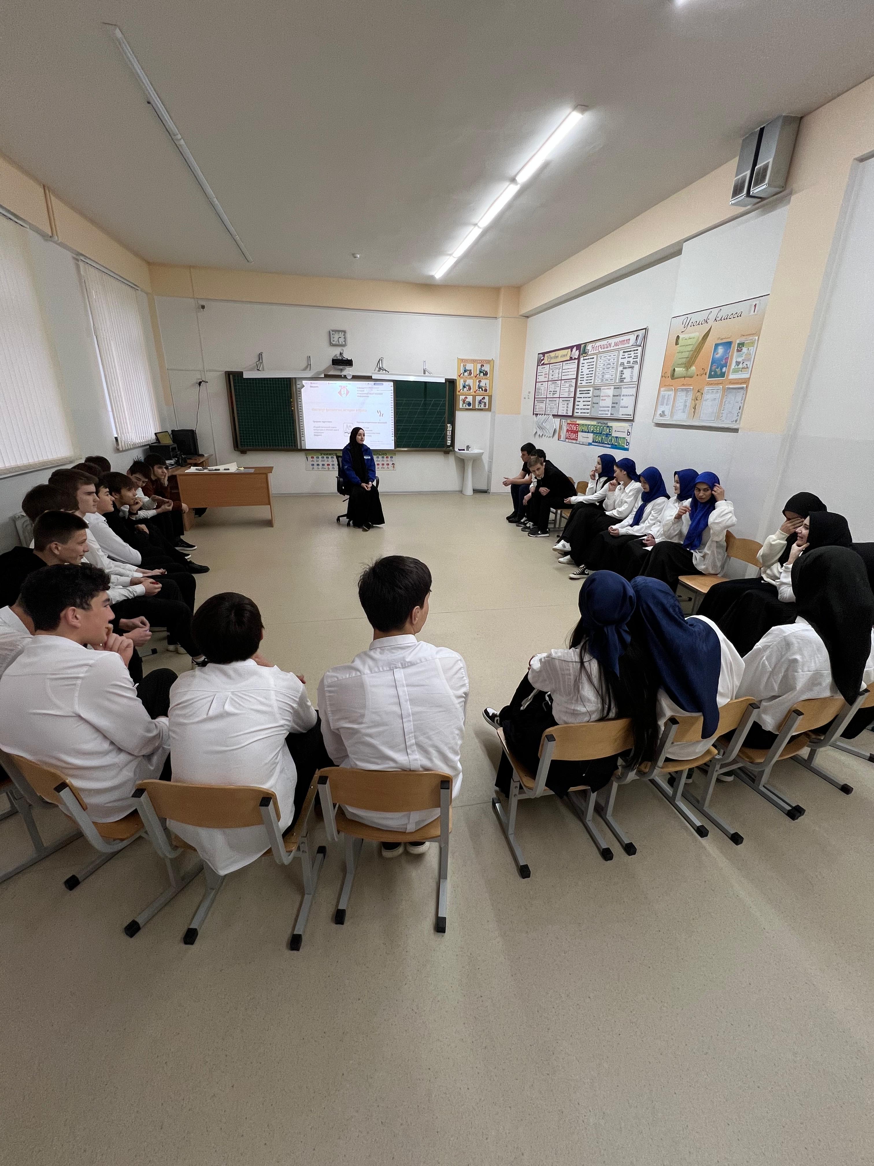 02.12.202502 декабря 2025 года в МБОУ «Веденская средняя общеобразовательная школа №1» для обучающихся 9-11 классов района была проведена профориентационная тренинговая программа.Цель мероприятия: оказание помощи школьникам в профессиональном самоопределении, выявлении их интересов, навыков и карьерных целей.Организаторы и содержание: Мероприятие проведено представителями Чеченского государственного педагогического университета(ЧГПУ) – членами студенческого объединения «Амбассадоры ЧГПУ» под руководством сотрудника отдела профориентационной работы и довузовской подготовки Абазовой Айны Аслановны. В формате интерактивного тренинга (в форме полукруга для лучшего взаимодействия) участники под руководством тренеров выполняли практические задания и упражнения, направленные на анализ своих склонностей и компетенций, а также знакомились с возможностями построения образовательной и профессиональной траектории.Охват участников:В тренинге приняли активное участие около 150 обучающихся старших классов школ муниципалитета.Значимость:Мероприятие способствовало расширению кругозора учащихся в мире профессий, предоставило им актуальную информацию о возможностях получения педагогического образования в ЧГПУ и стало практическим инструментом для размышлений о будущем выборе.